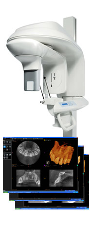 一歯科用CT(ヨシダ トロフィーパンプラス)にてアゴの骨の立体的な形態や、神経の位置把握、さらに骨密度の診査などを調べます。デジタルにより従来のフィルムを使用したレントゲン撮影に比べ、人体に受ける放射線の量を約1/4〜1/10に抑える事が可能に、またCT(3D)機能により断層写真、立体的な撮影ができますので、インプラントのみならず、あらゆる歯科診療でより正確な診断と正確な治療が行えます。
