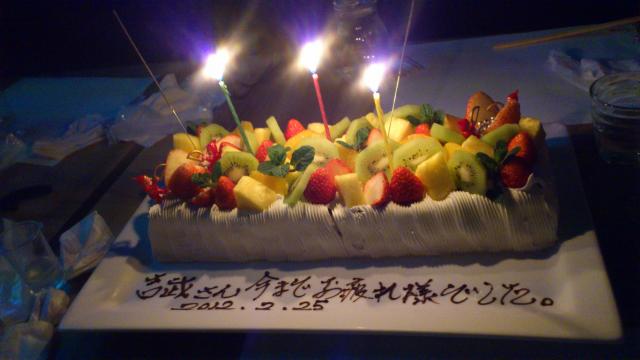 そして、サプライズもありました。私の好きな、いきものがかりの「ありがとう」の曲と共にケーキが出てきました。